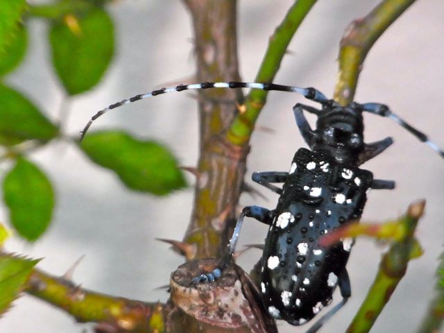 庭のいきもの その17 2015.07.202020.02.15 おっきな昆虫を見つけたうきうきとはうらはらに きゃー!やめてーーーー!!! と思わず声が。 ゴマダラカミキリは生木を食べます。 最近弱ってきていたバラを狙いうちで 私に代わって剪定してくれております。 n。