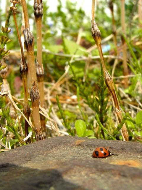 草むらには、てんとう虫が