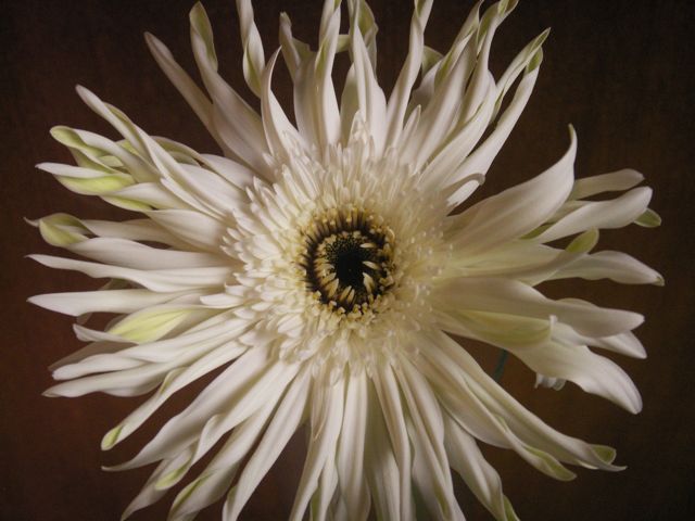 大輪です。 切花 2013.10.282021.01.18 ガーベラ 『パスタピュア』 前回に引き続きの大輪品種です。 若干、花びらがとれやすい場合がありますが、特徴的で存在感のある この花にはそれがマイナスポイントにはなりません。 手にとってください、圧倒されますから。 s。
