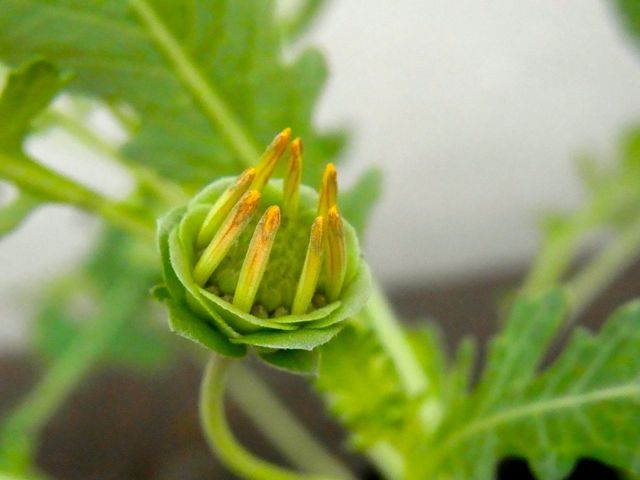 とてもユニークな花で蕾は幾何学的な様相で、花びらは